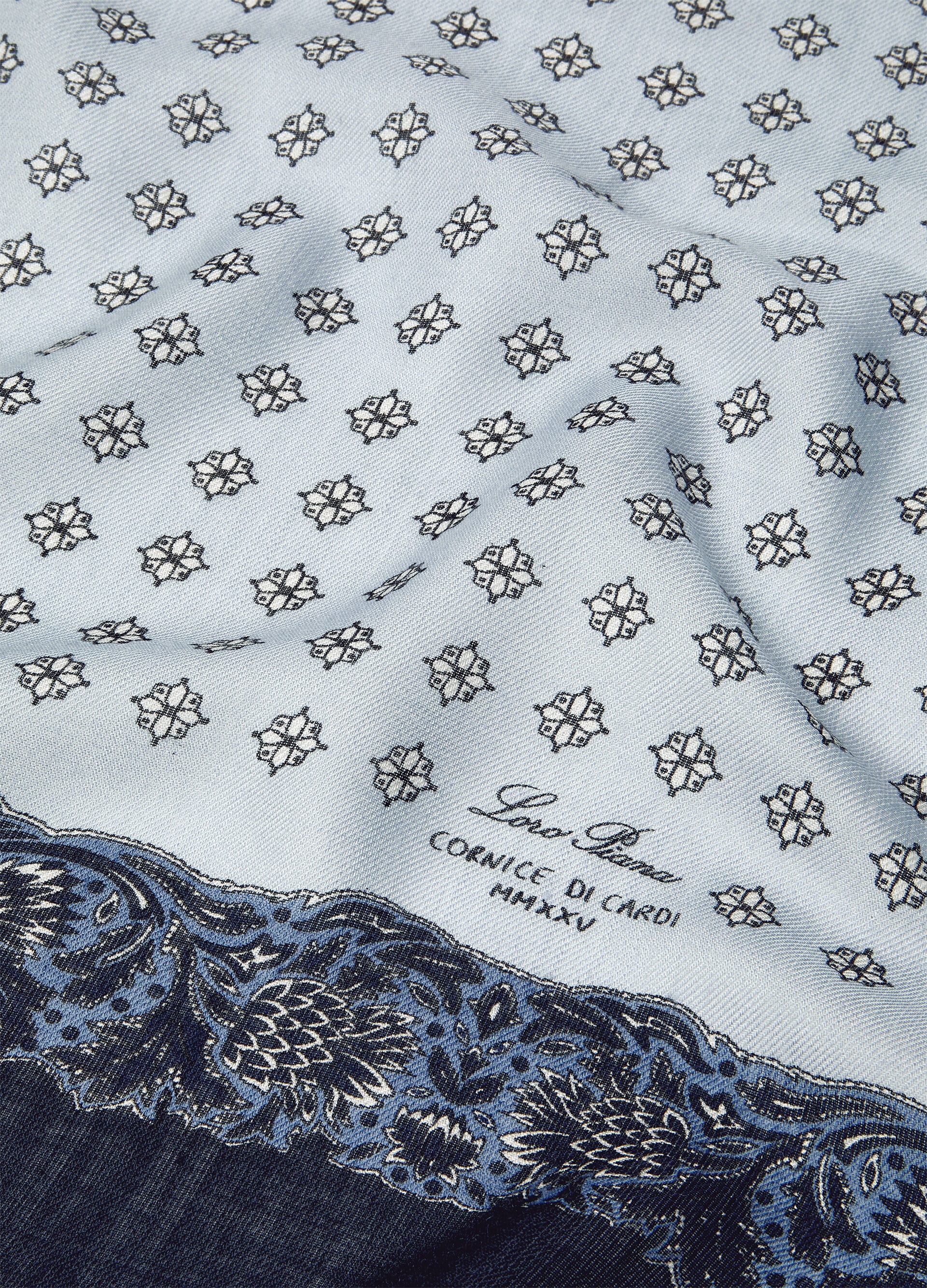 The LP foulard reflects the rich heritage of Loro Piana, beautifully complementing any ensemble with understated finesse. A true collector's masterpiece, this sophisticated square scarf is crafted in luxurious wool and adorned with an exclusive print. The atemporal design of the print features tiny stylised flowers resting on a monochrome veil of colour, creating a clean, elegant motif of unparalleled versatility.