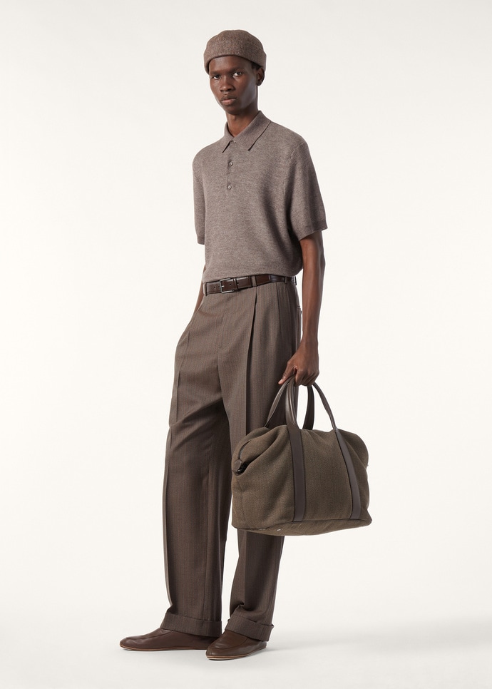 This product should be handled with care. We suggest never wearing the product two days in a row, so that the fibres regain their natural structure and texture. Check the label for washing and ironing instructions. Use a professional cleaning service, particularly if your product includes delicate details. Fold carefully and store with Loro Piana cedar balls/moth repellent in a dry place away from heat and light sources.